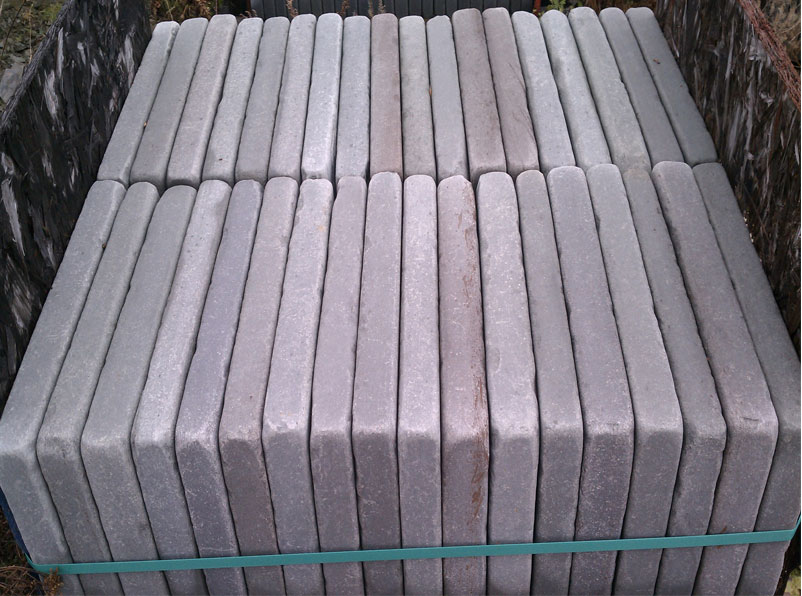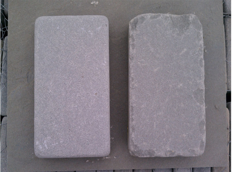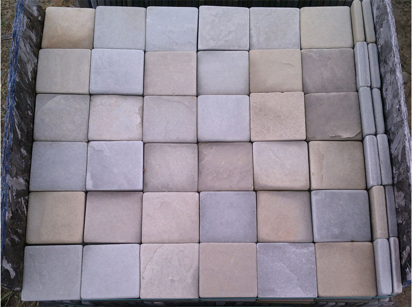 Pavers come in a 6"x6", 6"x9", 9"x9", 6"x12", 1'x1', 1'x18" or 1'x2'. Thicknesses are available in ½", 1", 1½" plus. Anything under 1" is recommended to be wet laid. 1 ½" plus can be tampered.
